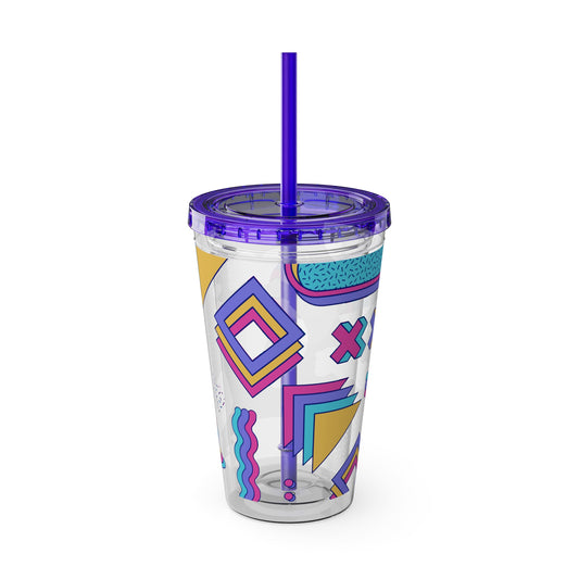 Retro Memphis Pattern Acryclic Tumbler with Straw, 16oz
